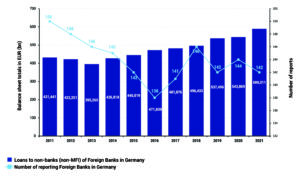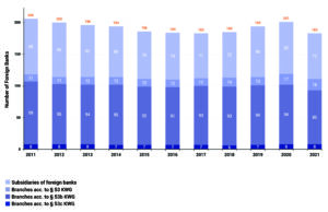 The balance sheet totals of foreign banks in Germany have continued to rise sharply compared to the year 2020, also due to the Brexit effects.