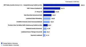 Foreign banks continue to dominate the custody business for fund assets of German special securities funds in the year 2021.