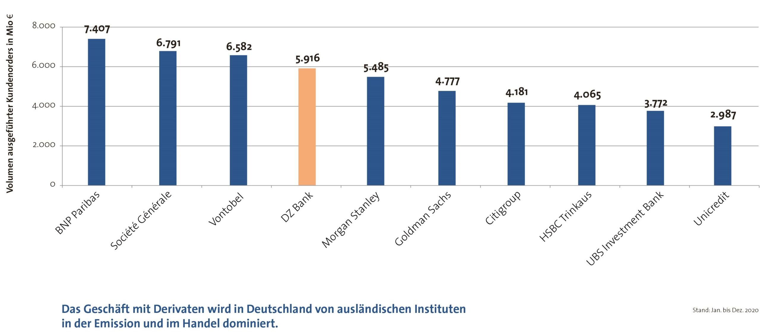 Börsenumsätze von derivativen Wertpapieren nach Emittenten im Jahr 2020
